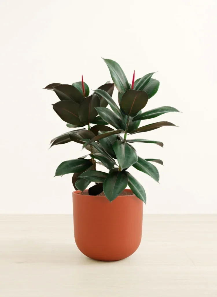 The Rubber Plant is a classic choice for its large, glossy leaves and ability to tolerate a range of conditions.