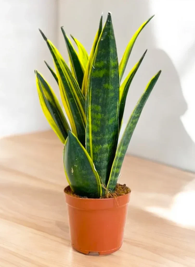 Known for its striking, upright leaves and ability to purify air, the snake plant is a great choice for bedrooms or living areas.