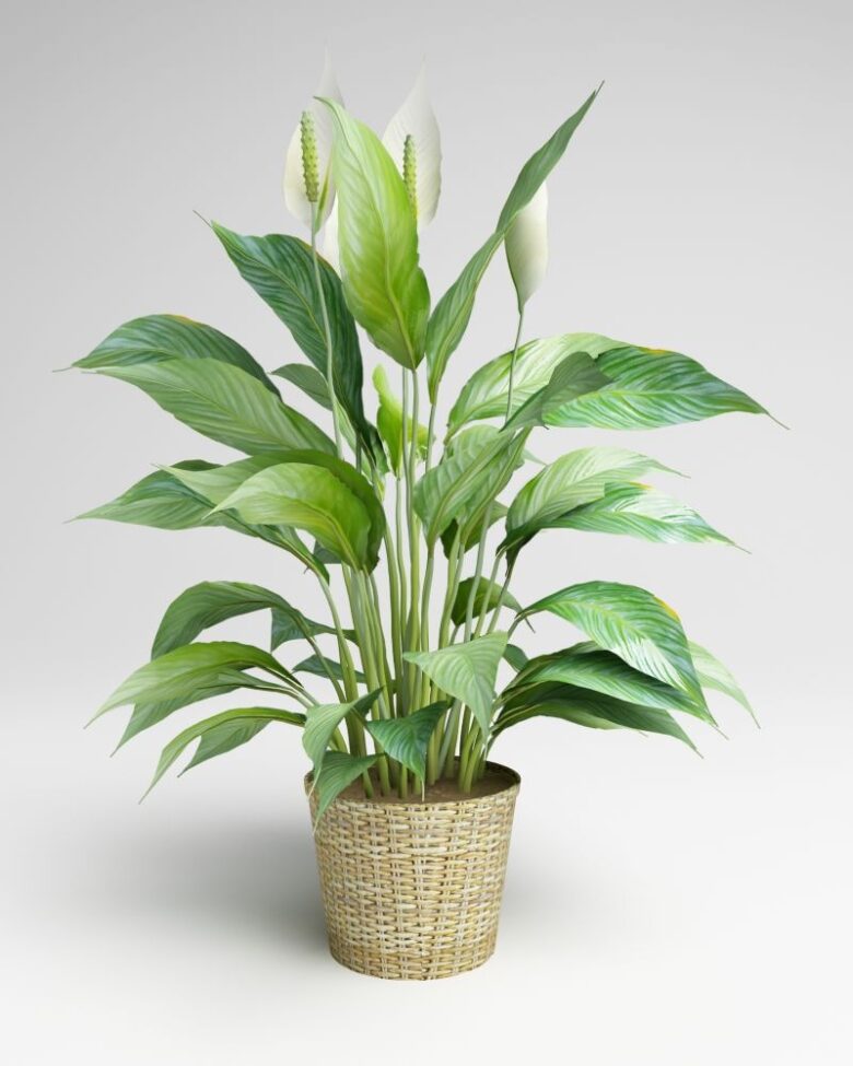 The Peace Lily is loved for its elegant white flowers and ability to thrive in low light conditions.